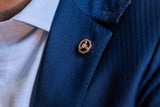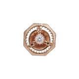 State-of-the-art 18 carat pink gold lapel pin with a natural round diamond of 0.25 carat inside.  The design is made of 3 gears which make the center part with the stone move. The brilliance is incomparable thanks to its Russian origin and perfect cut.